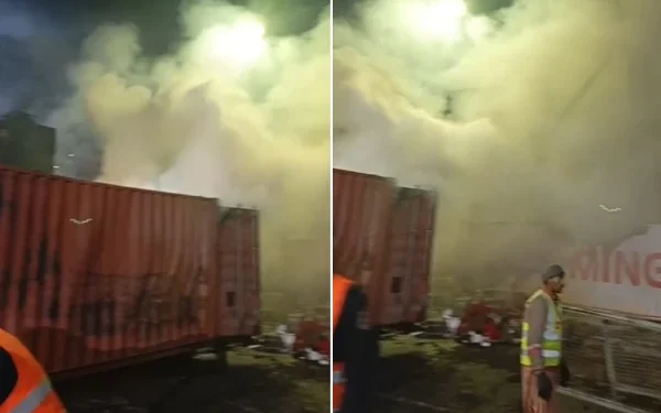 لگنے والی آگ پر دن میں قابو پالیا گیا تھا کہ جمعے کی شب مذکورہ مقام پر رکھے ہوئے ایک کنٹینر میں آگ دوبارہ بھڑک اٹھی جس سے نکلنے والا دھواں پورے علاقے میں پھیل گیا۔