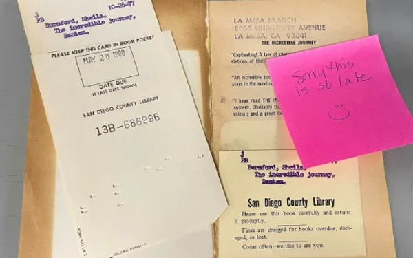 ریاست کیلیفورنیا کی سان ڈیاگو کاؤنٹی لائبریری کی برانچ منیجر کیسی کوڈیون نے بتایا کہ جنوری کے شروع میں انہوں نے ایک پیکج کھولا جس میں سے ایک کتاب نکلی جس کو برسوں پہلے جمع کرایا جانا تھا۔