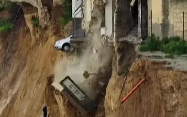 یہ دل دہلادینے والے مناظر اطالوی جزیرے سِسلی کے نیسچیمی قصبے کے ہیں۔ جہاں زمین مسلسل دھنستی جا رہی تھی اور گھر گاڑیاں خطرناک طریقے سے لٹکے ہوئے تھے۔
