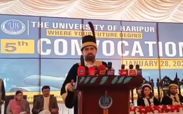 یونیورسٹی آف ہری پور کے پانچویں کانووکیشن سے خطاب میں انہوں نے کہا کہ فارغ التحصیل طلبہ کو مبارکباد دی اور کہا کہ امید ہے ملک و قوم کی ترقی میں اہم کردار ادا کریں گے۔ انہوں ںے غازی میں یونیورسٹی آف ہری پور کے تحصیل کیمپس کے قیام کا اعلان کیا۔
