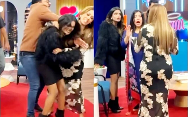 معاملہ ہاتھ سے نکلنے لگا تو سینئر میزبان عظمیٰ خان نے مداخلت کر کے دونوں کو الگ کیا اور ماحول کو ٹھنڈا کرنے کی کوشش کی، مگر تب تک یہ جھڑپ سوشل میڈیا پر طوفان برپا کر چکی تھی۔
