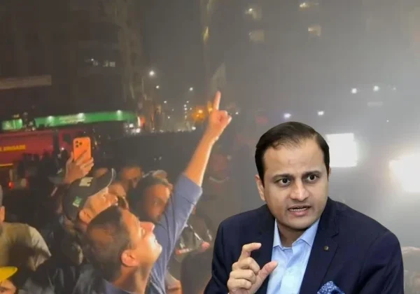 کراچی میں ایم اے جناح روڈ پر واقع گل پلازہ میں آگ لگنے کے بعد میئر کراچی جب وہاں پہنچے ...