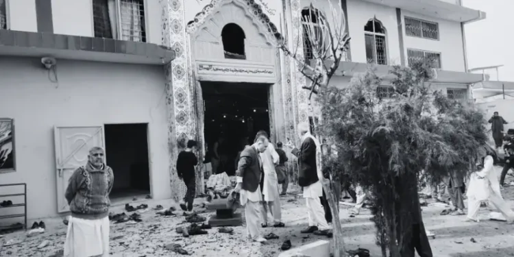 Images from the site showed bloodied bodies lying on the carpeted floor surrounded by shards of glass, debris, and panicked worshippers.