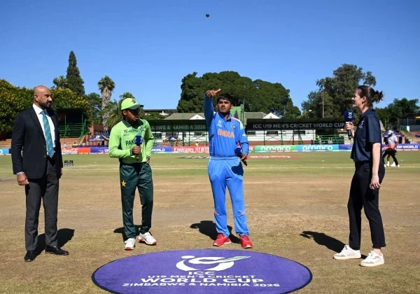 آئی سی سی انڈر 19 ورلڈ کپ سپر سکسز مرحلے کے میچ میں پاکستان نے بھارت کیخلاف ٹاس جیت کر ...