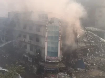 کراچی میں ایم اے جناح روڈ پر واقع گل پلازہ میں آگ لگنے کے بعد میئر کراچی جب وہاں پہنچے ... -